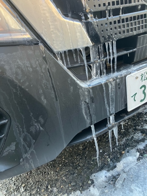 気温も非常に低く、車にはツララができるほどの寒さです。