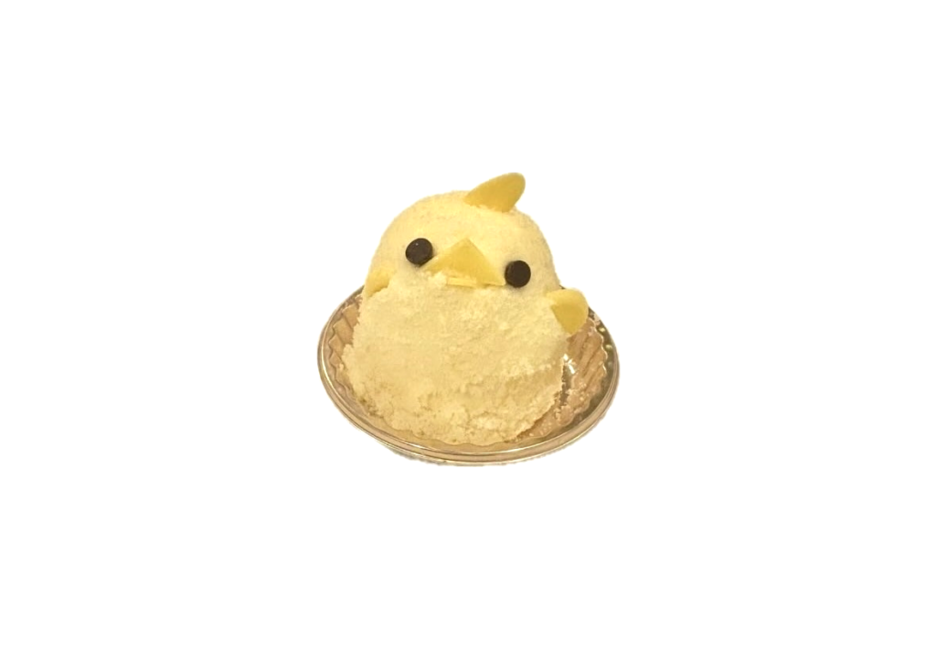 ひよこの形をしたプリンとケーキのハーフみたいなスイーツで、味も見た目も名前もとにかくかわいいです。