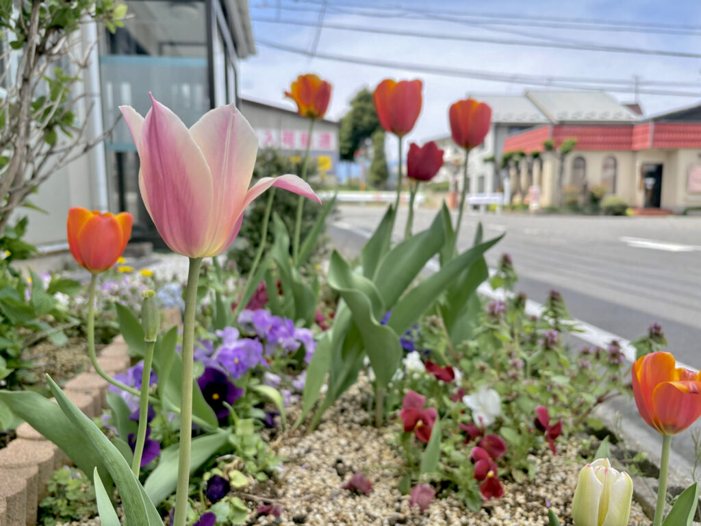 昨年植えたチューリップが特に元気で、全部高身長でスリムです。グラデーションが可愛らしいですね♪